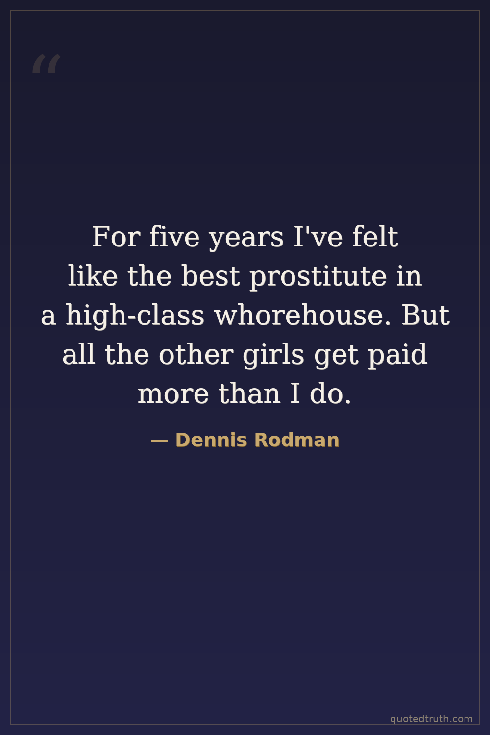 For five years I've felt like the best prostitute in a high-class whorehouse. But all the other girls get paid more than I do.