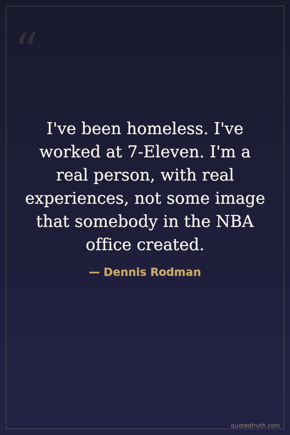 I've been homeless. I've worked at 7-Eleven. I'm a real person, with real experiences, not some image that somebody in the NBA office created.