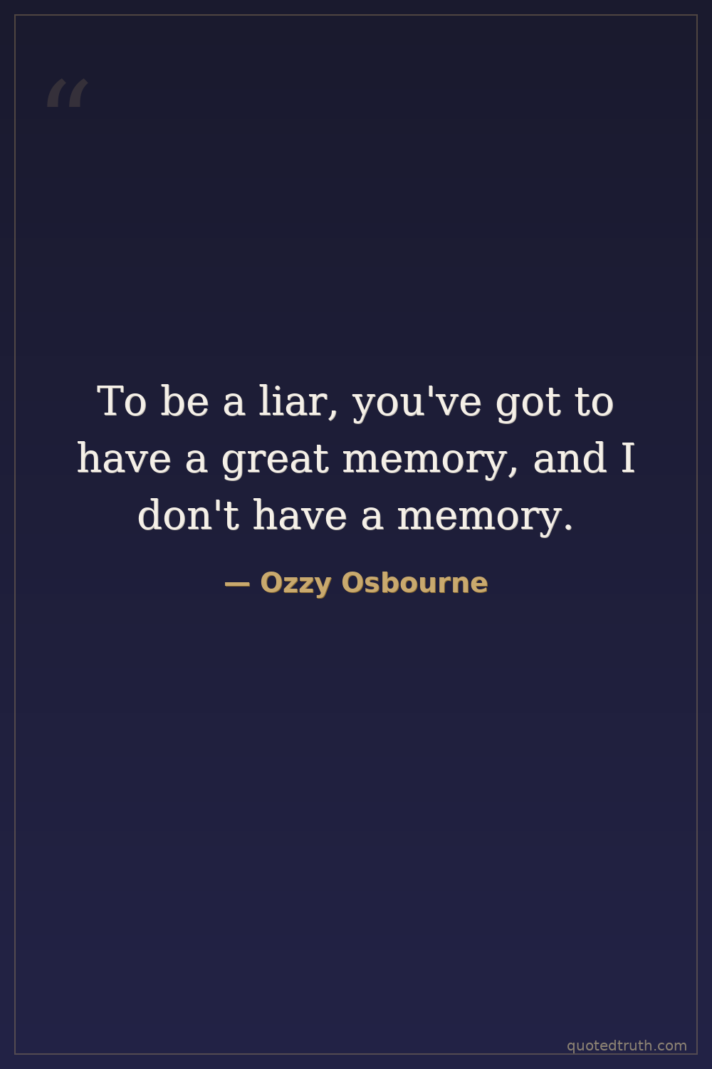 To be a liar, you've got to have a great memory, and I don't have a memory.