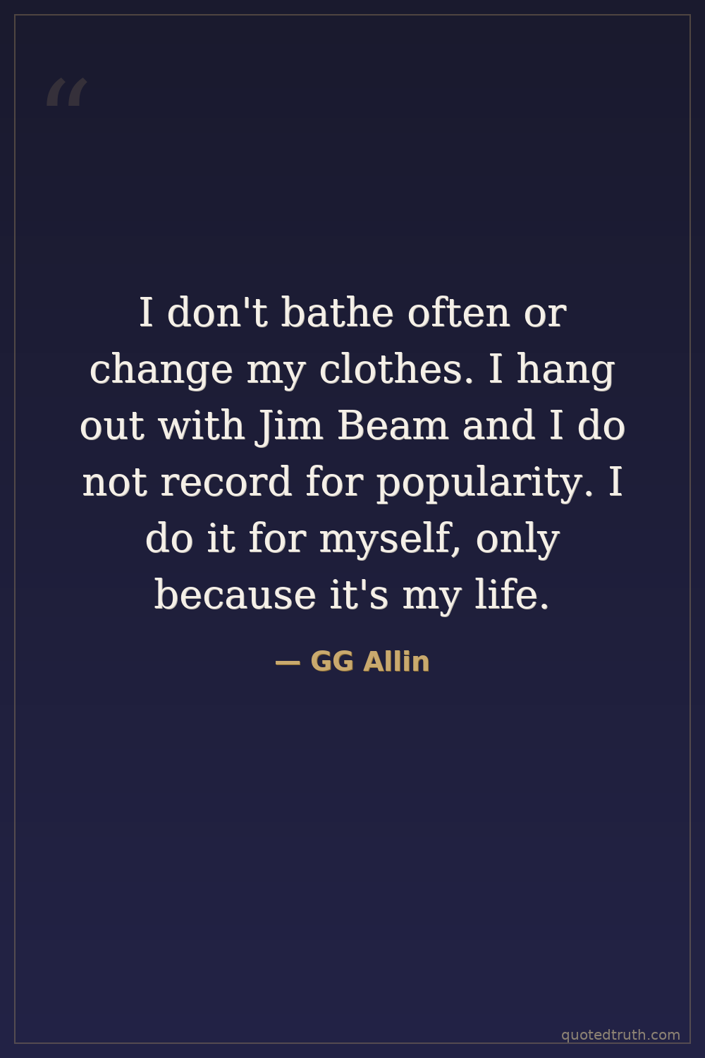 I don't bathe often or change my clothes. I hang out with Jim Beam and I do not record for popularity. I do it for myself, only because it's my life.