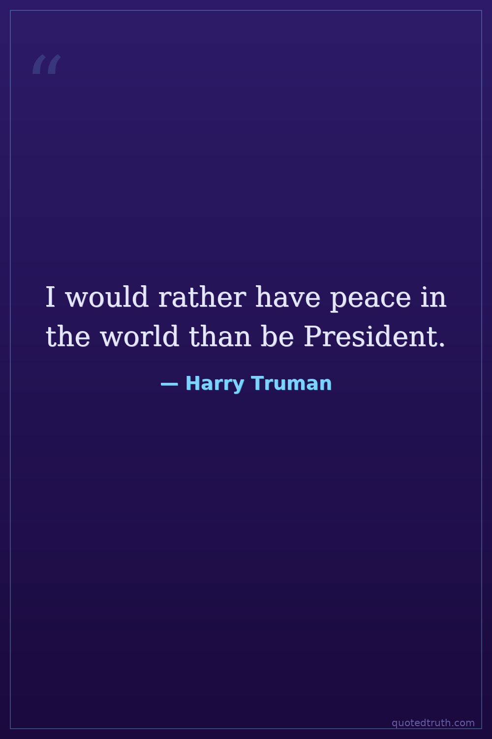 I would rather have peace in the world than be President.