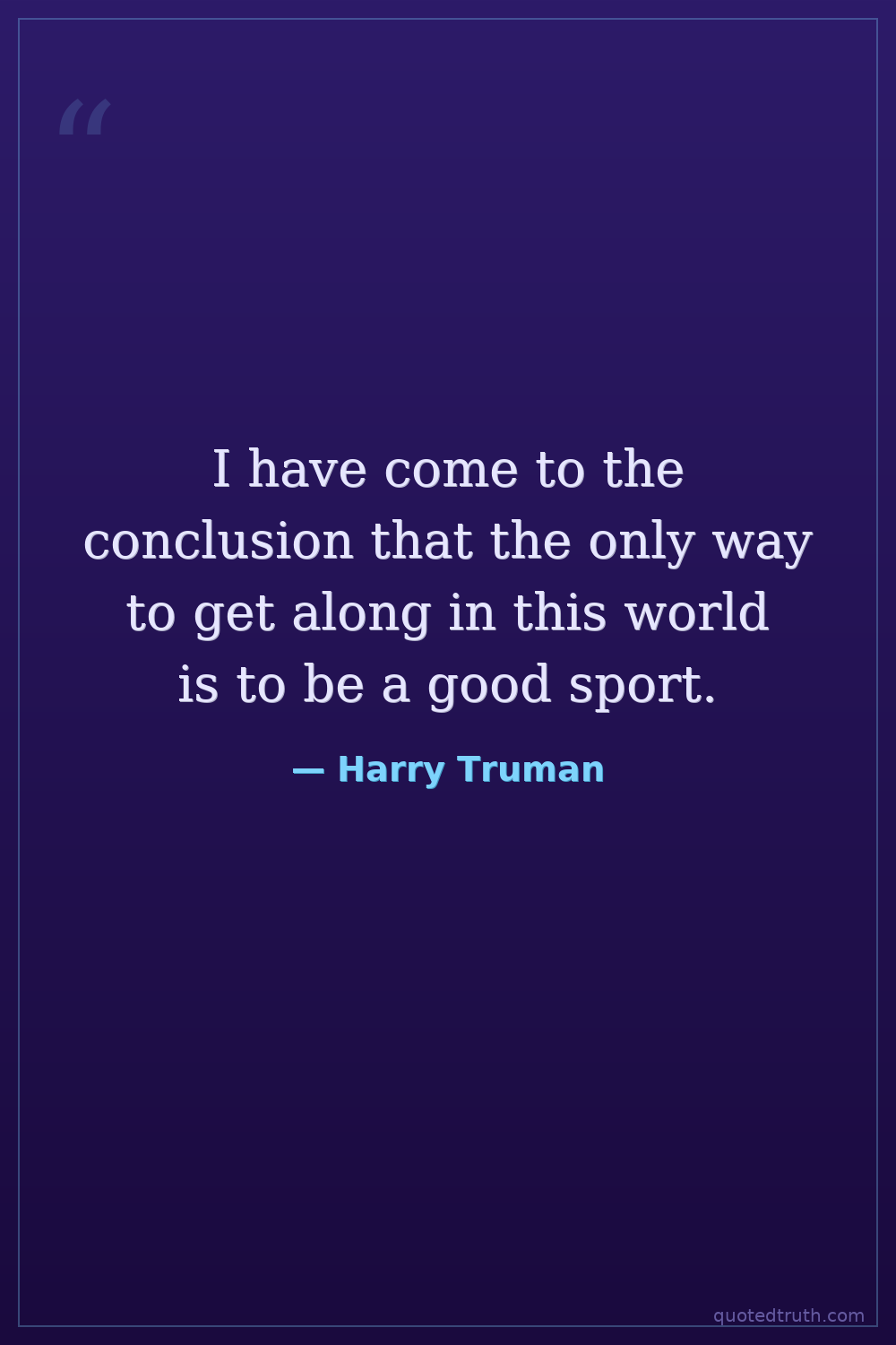 I have come to the conclusion that the only way to get along in this world is to be a good sport.