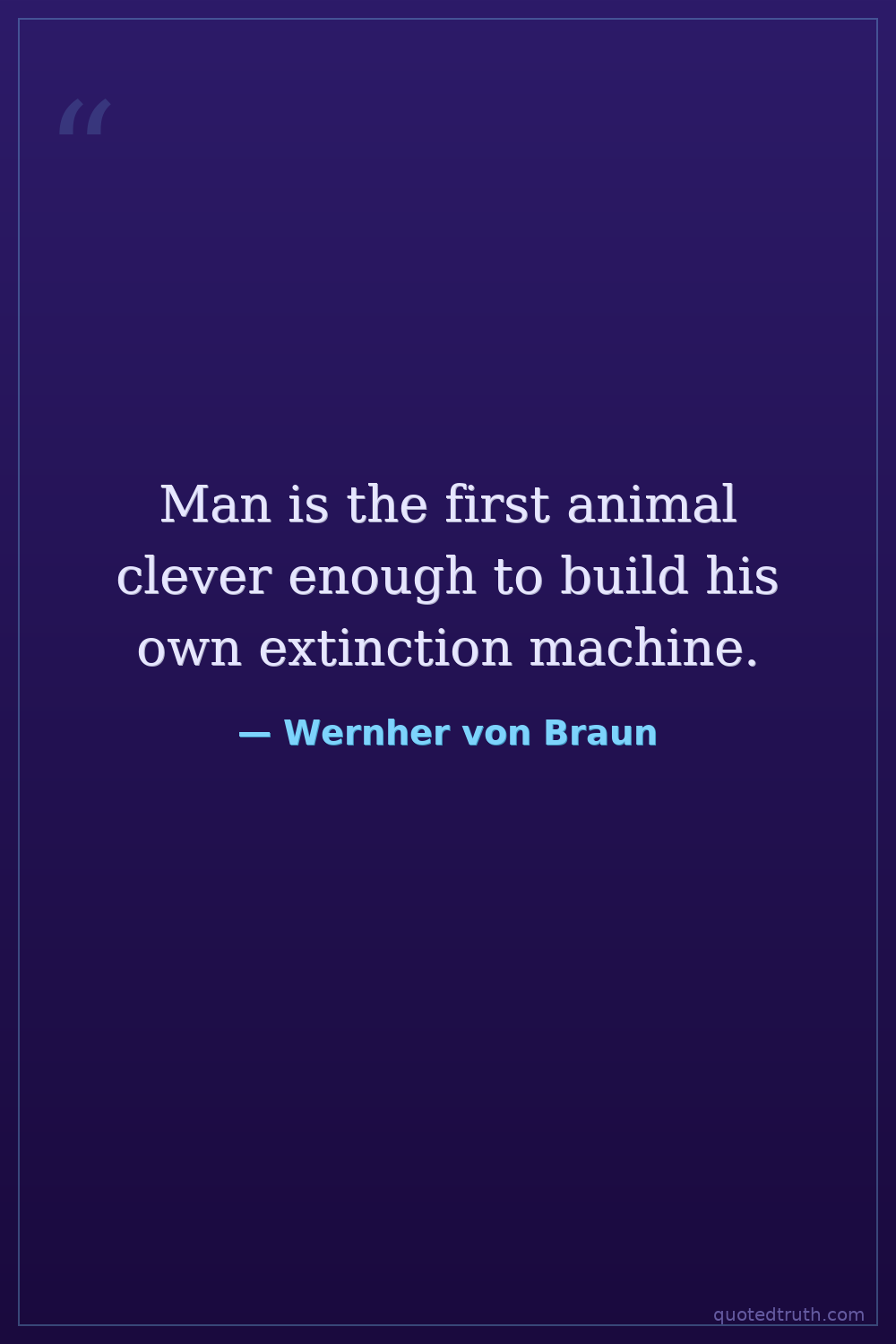 Man is the first animal clever enough to build his own extinction machine.