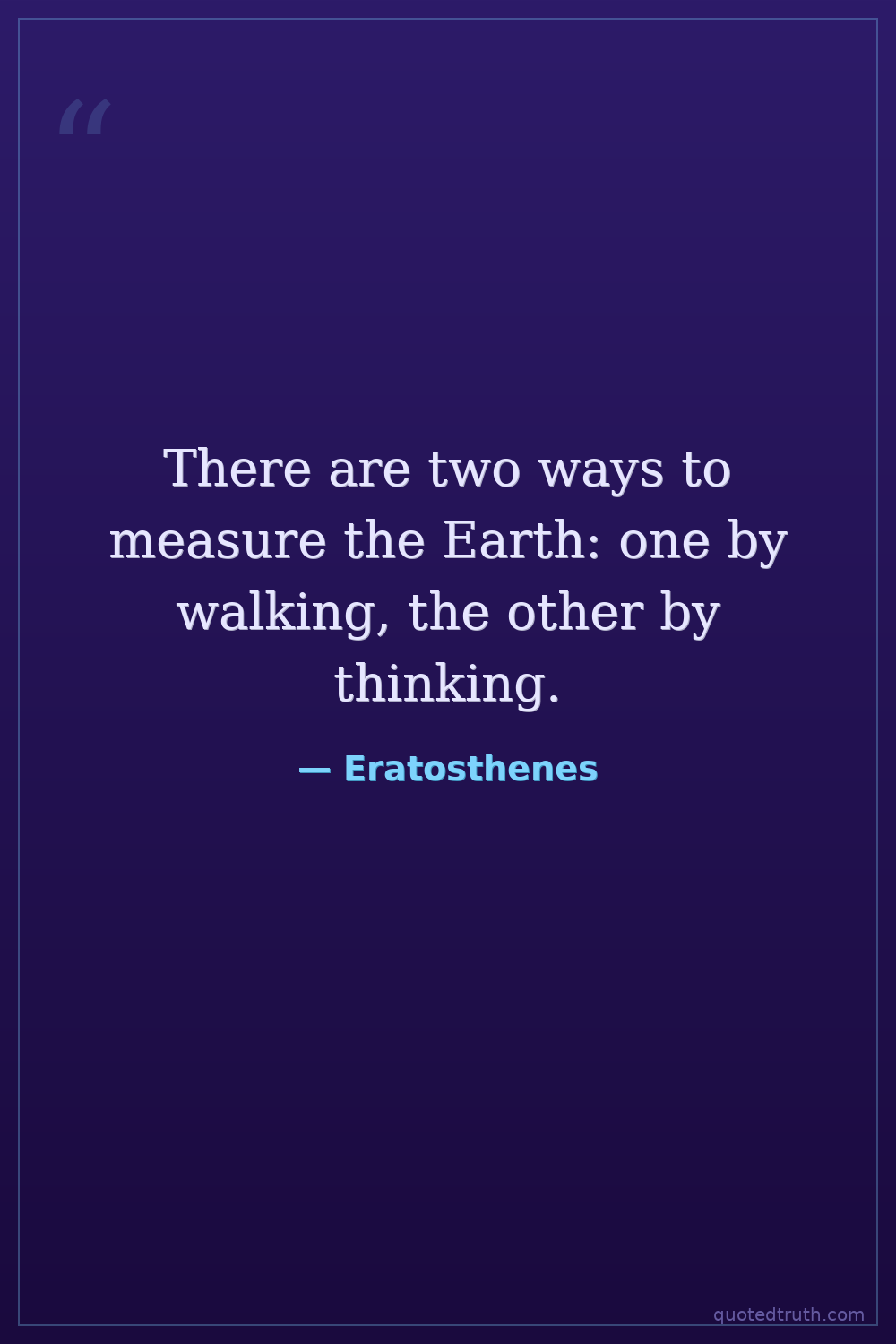 There are two ways to measure the Earth: one by walking, the other by thinking.