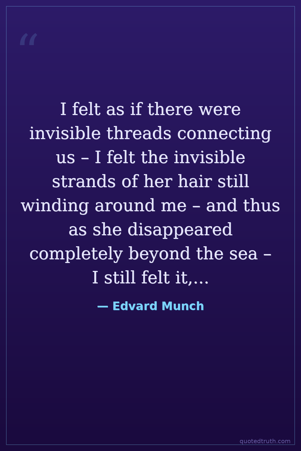 I felt as if there were invisible threads connecting us – I felt the invisible strands of her hair still winding around me – and thus as she disappeared completely beyond the sea – I still felt it, felt the pain where my heart was bleeding – because the threads could not be severed.