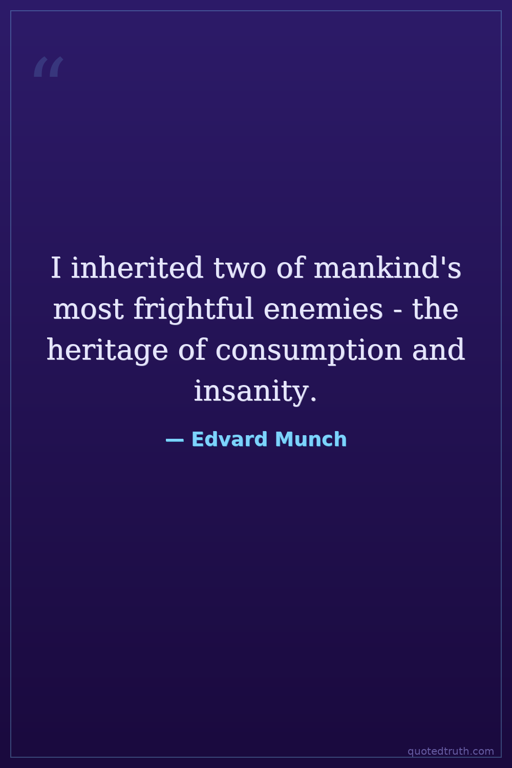 I inherited two of mankind's most frightful enemies - the heritage of consumption and insanity.