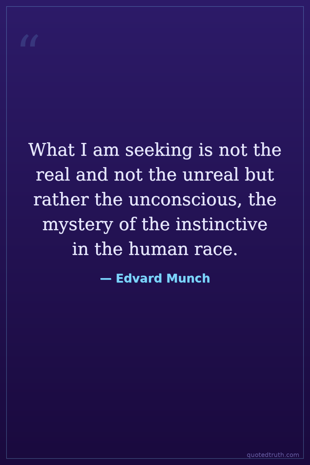 What I am seeking is not the real and not the unreal but rather the unconscious, the mystery of the instinctive in the human race.