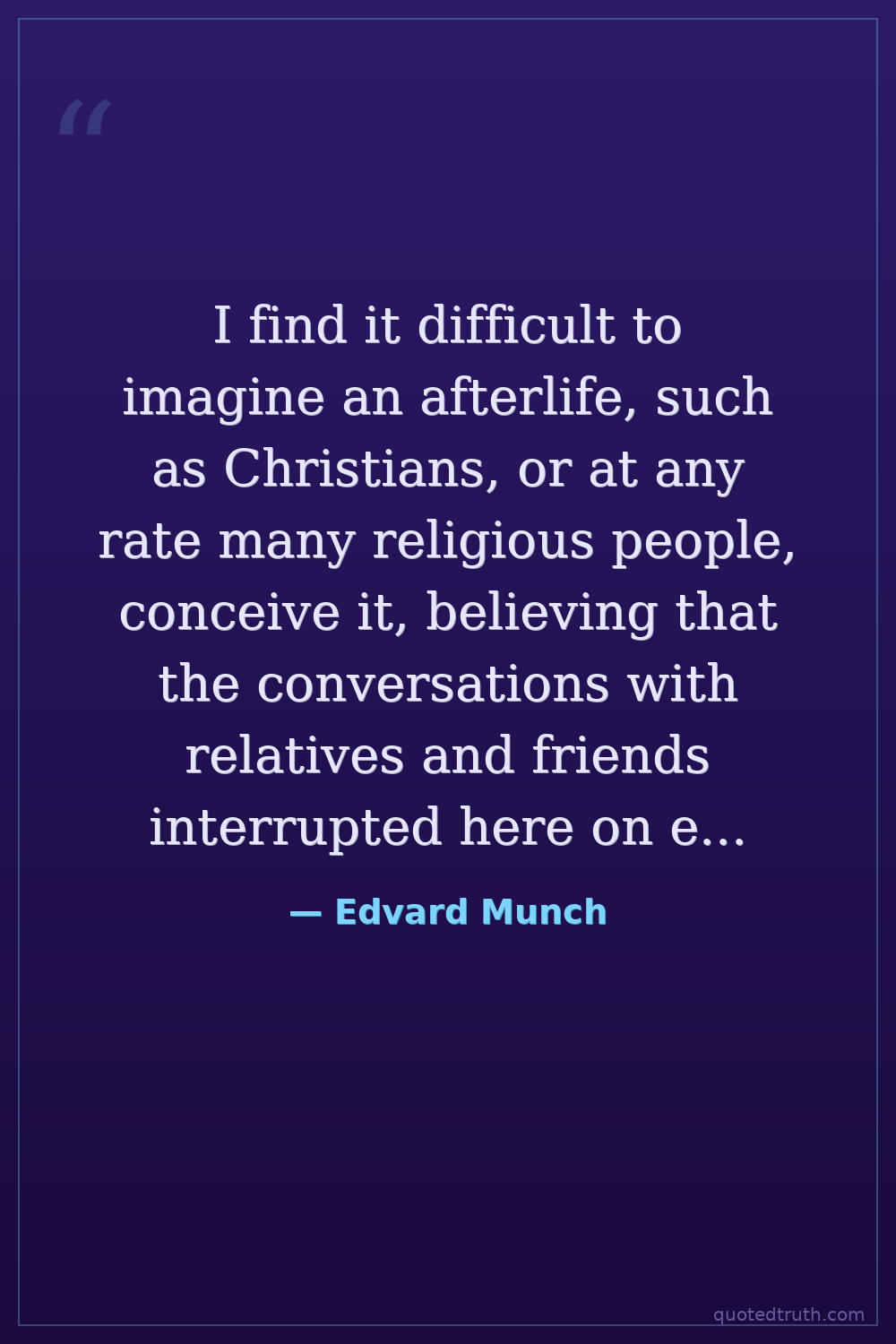 I find it difficult to imagine an afterlife, such as Christians, or at any rate many religious people, conceive it, believing that the conversations with relatives and friends interrupted here on earth will be continued in the hereafter.