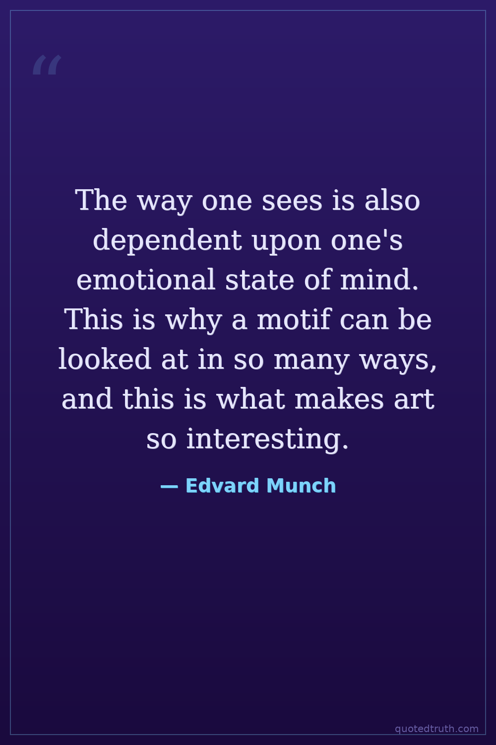 The way one sees is also dependent upon one's emotional state of mind. This is why a motif can be looked at in so many ways, and this is what makes art so interesting.
