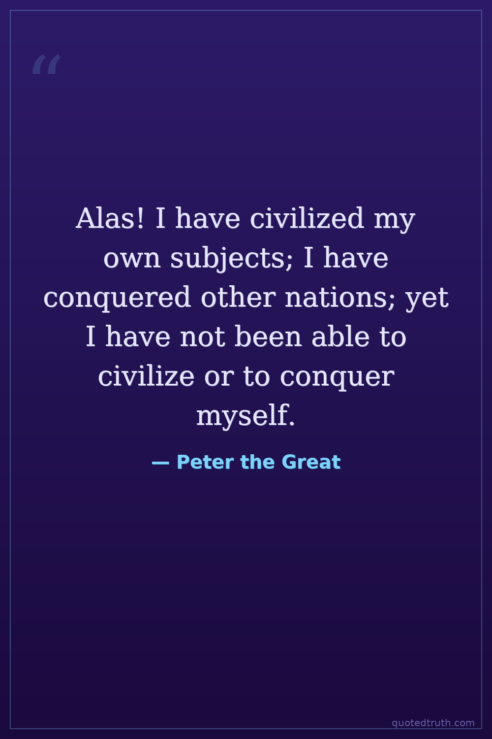 Alas! I have civilized my own subjects; I have conquered other nations; yet I have not been able to civilize or to conquer myself.