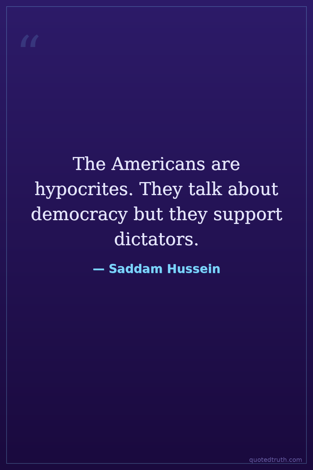The Americans are hypocrites. They talk about democracy but they support dictators.