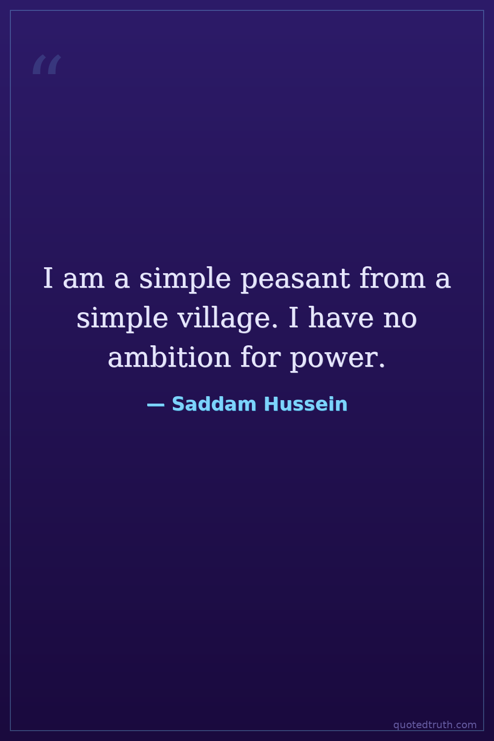 I am a simple peasant from a simple village. I have no ambition for power.