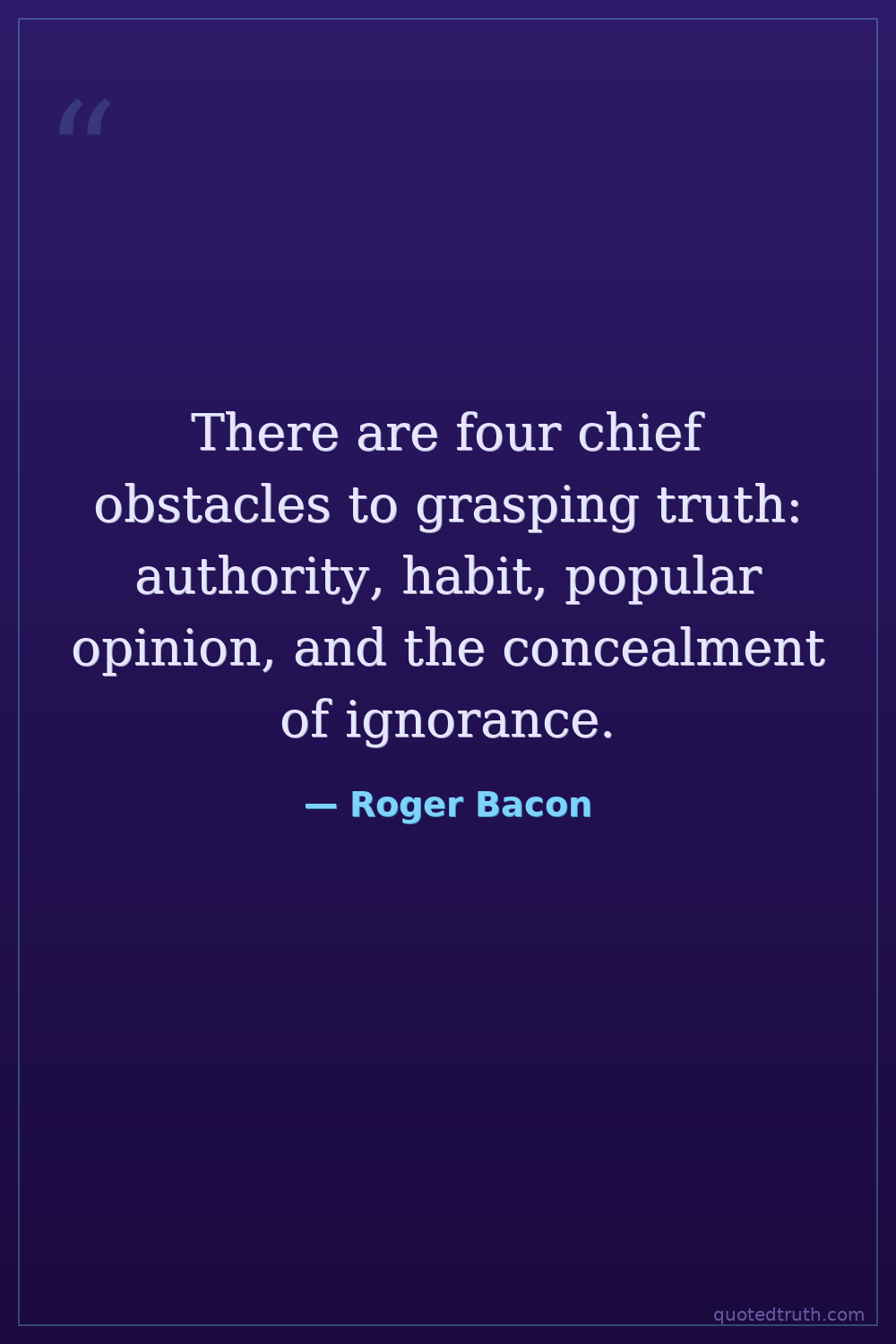 There are four chief obstacles to grasping truth: authority, habit, popular opinion, and the concealment of ignorance.