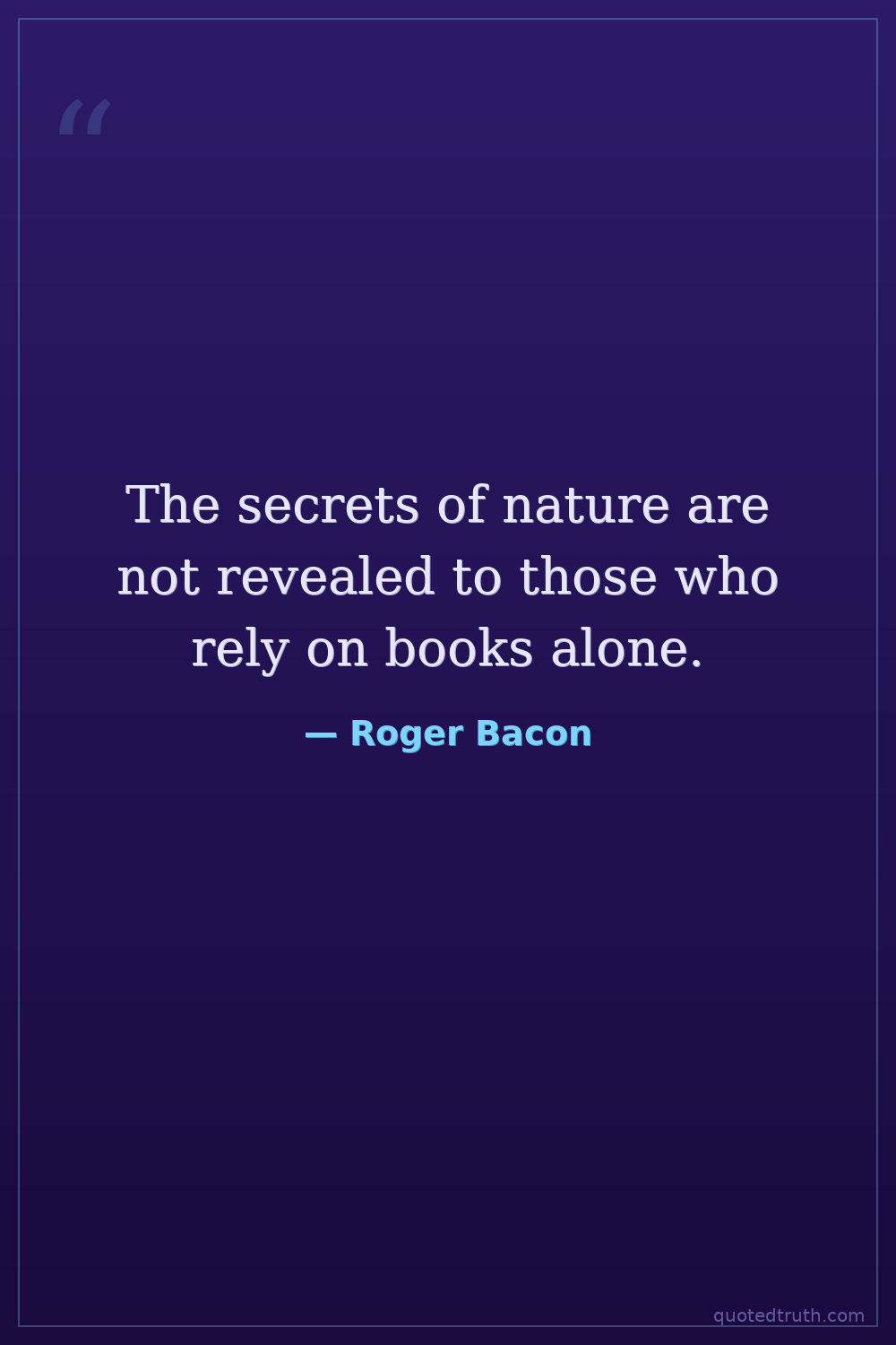 The secrets of nature are not revealed to those who rely on books alone.
