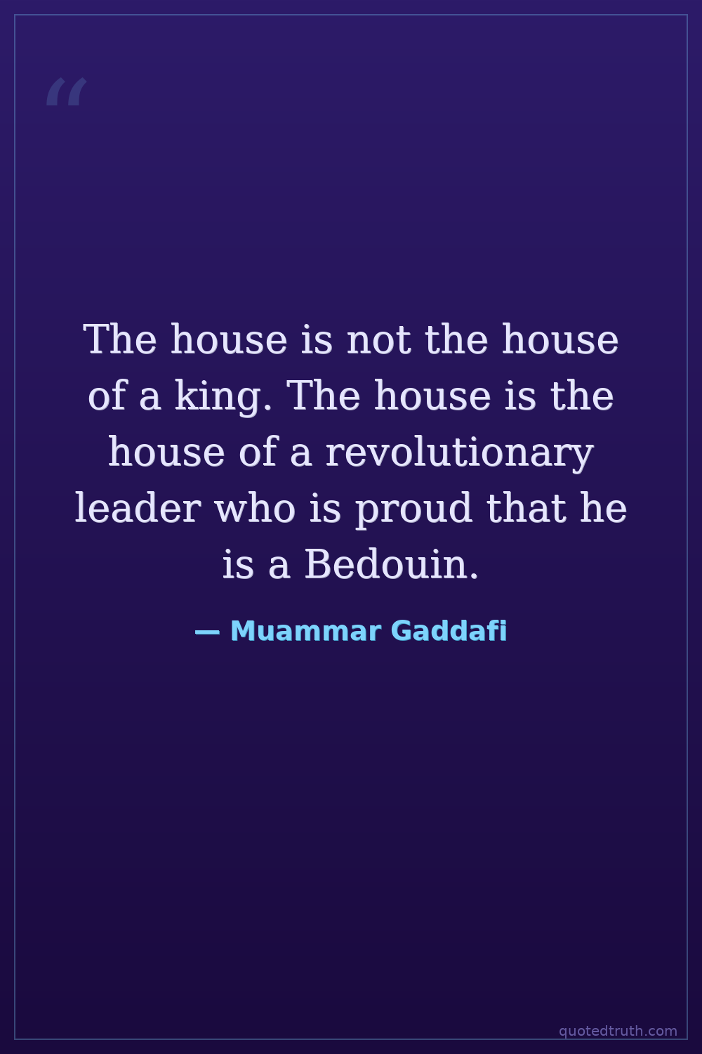The house is not the house of a king. The house is the house of a revolutionary leader who is proud that he is a Bedouin.
