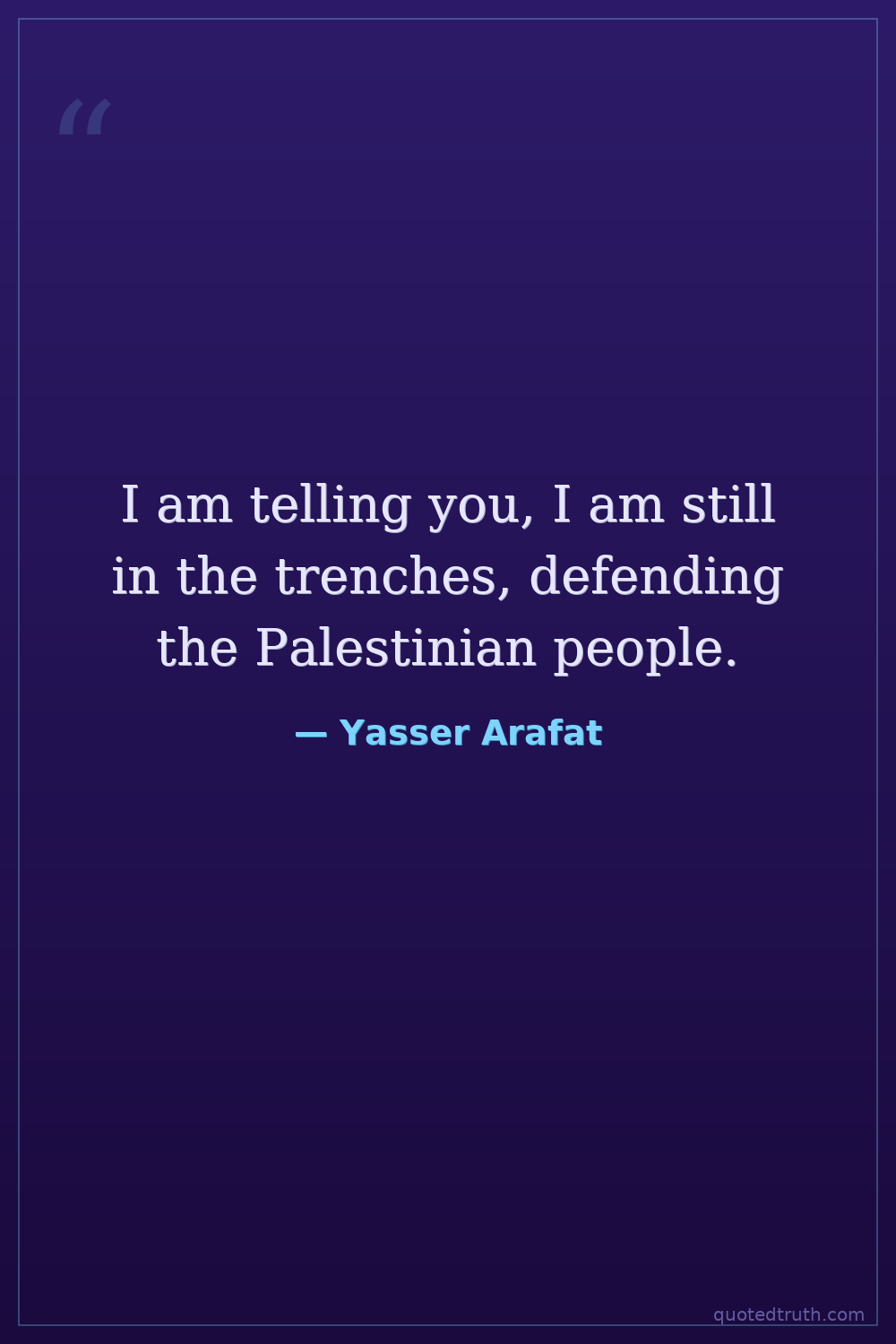 I am telling you, I am still in the trenches, defending the Palestinian people.