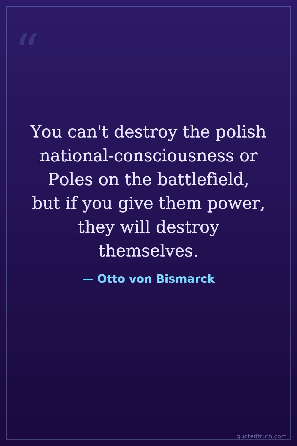 You can't destroy the polish national-consciousness or Poles on the battlefield, but if you give them power, they will destroy themselves.