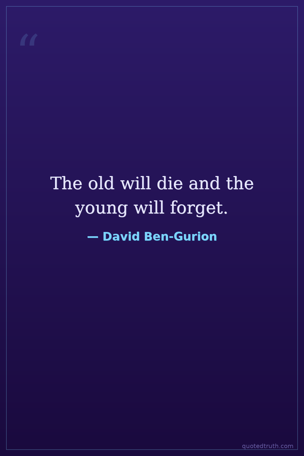 The old will die and the young will forget.