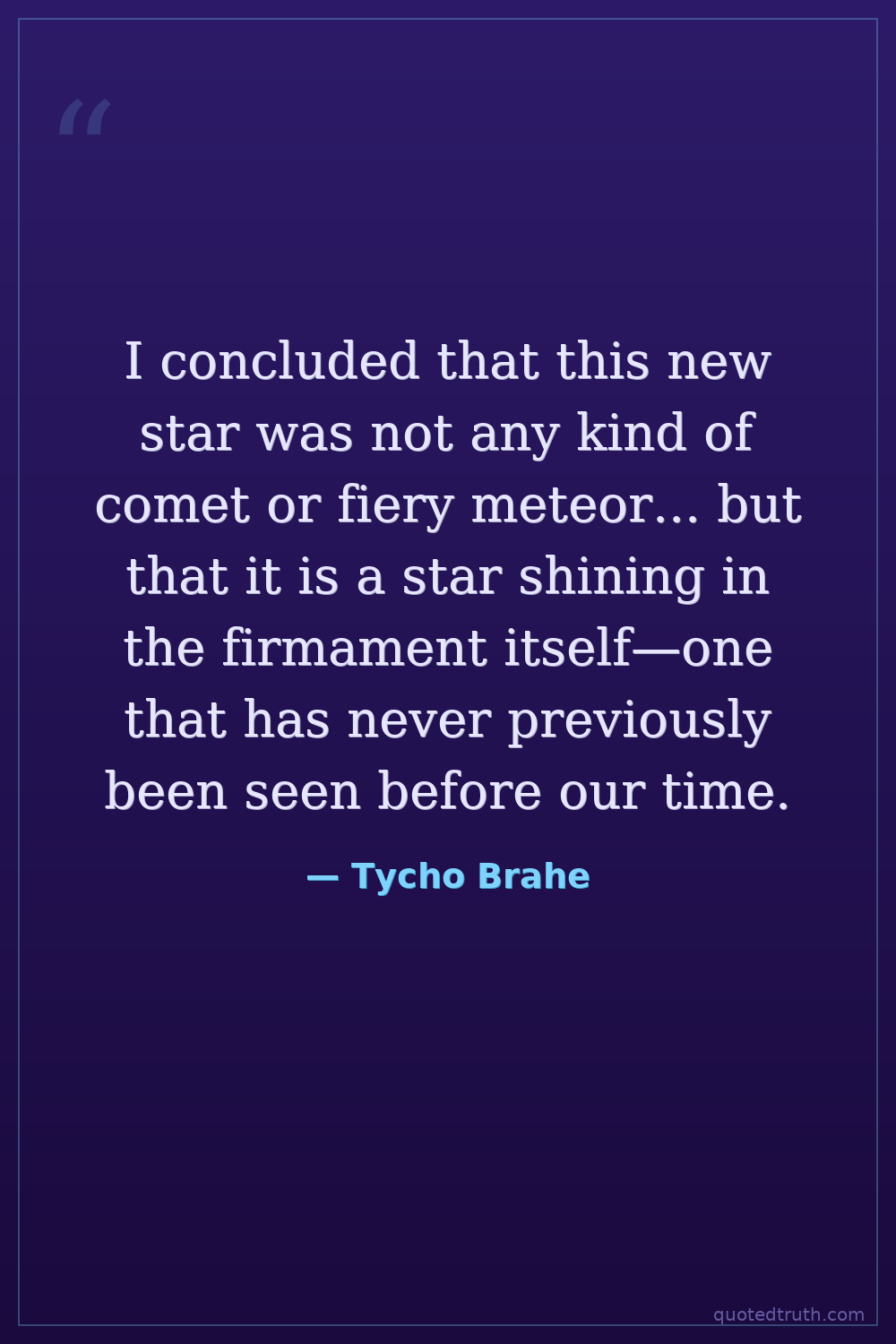 I concluded that this new star was not any kind of comet or fiery meteor... but that it is a star shining in the firmament itself—one that has never previously been seen before our time.