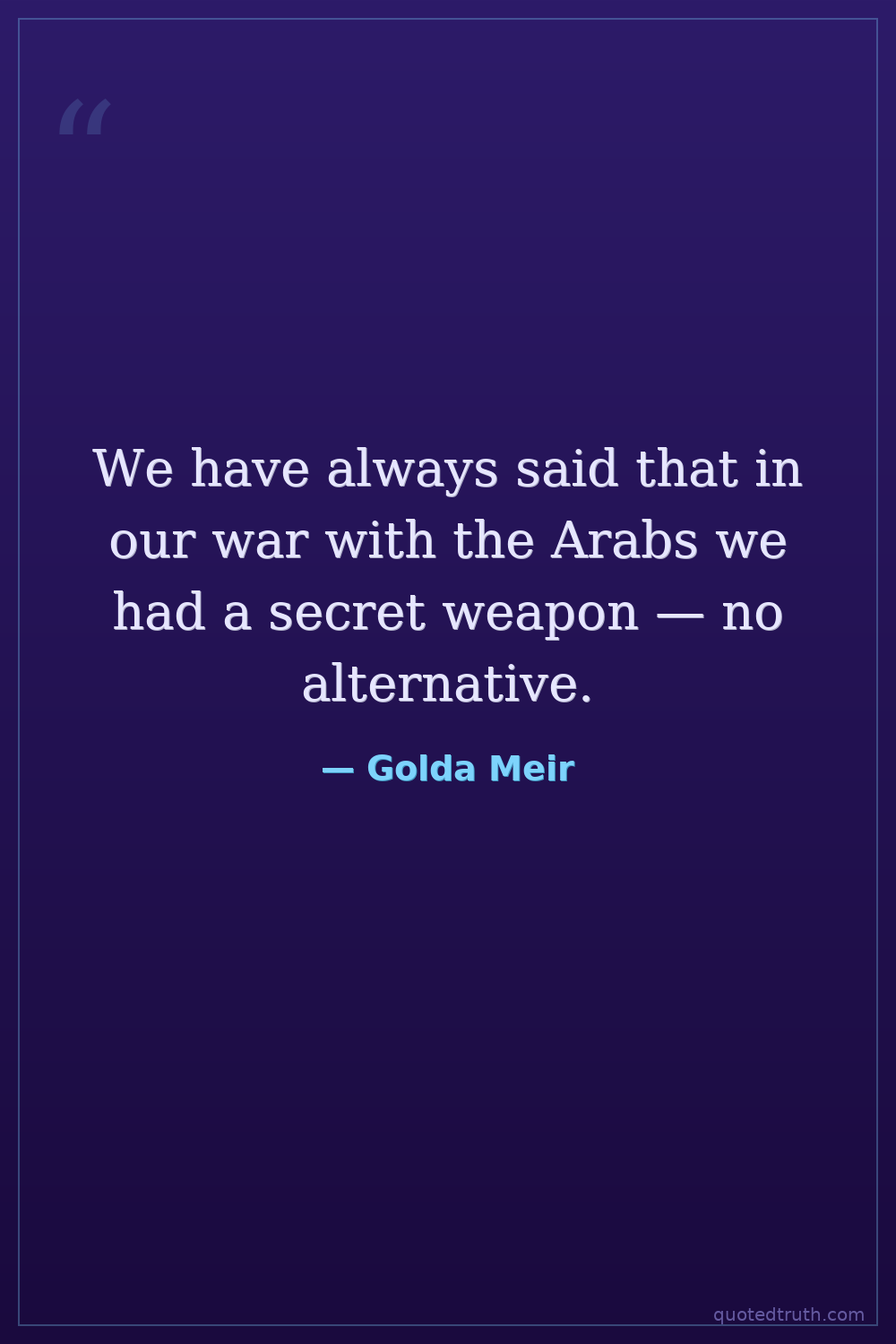 We have always said that in our war with the Arabs we had a secret weapon — no alternative.