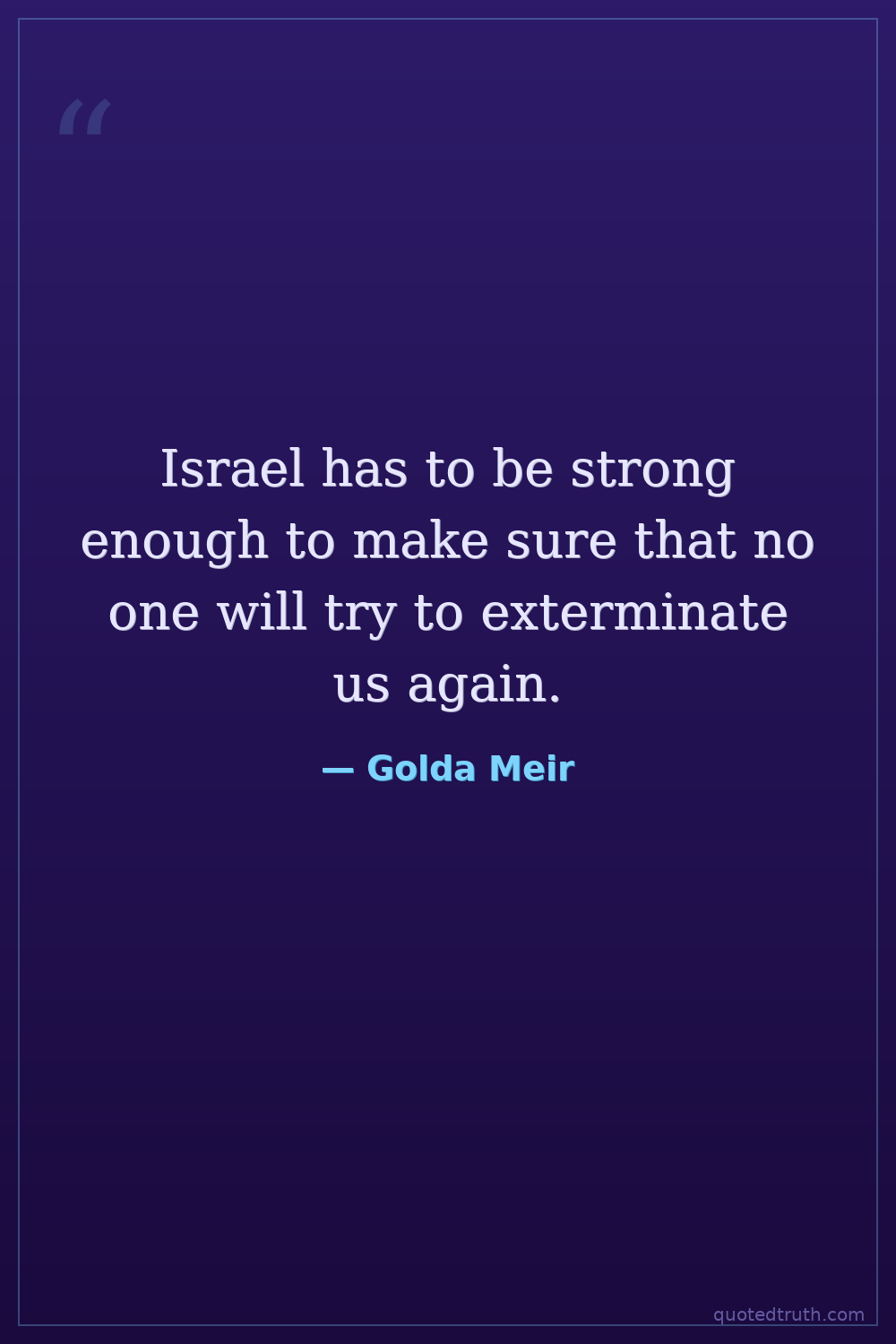 Israel has to be strong enough to make sure that no one will try to exterminate us again.