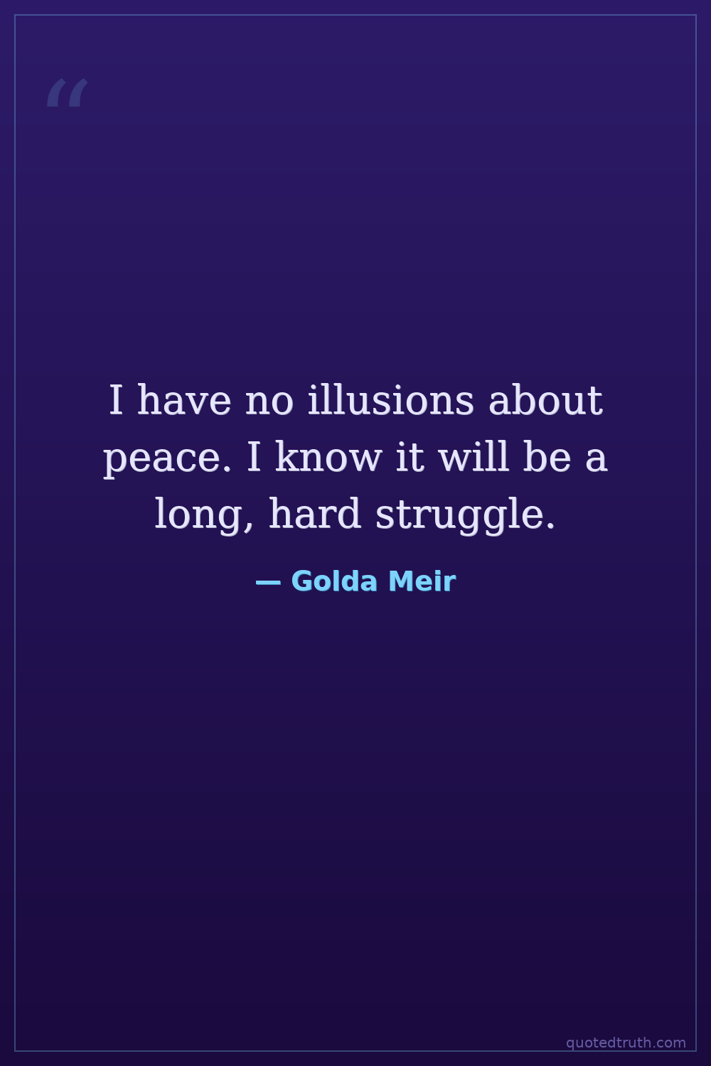 I have no illusions about peace. I know it will be a long, hard struggle.