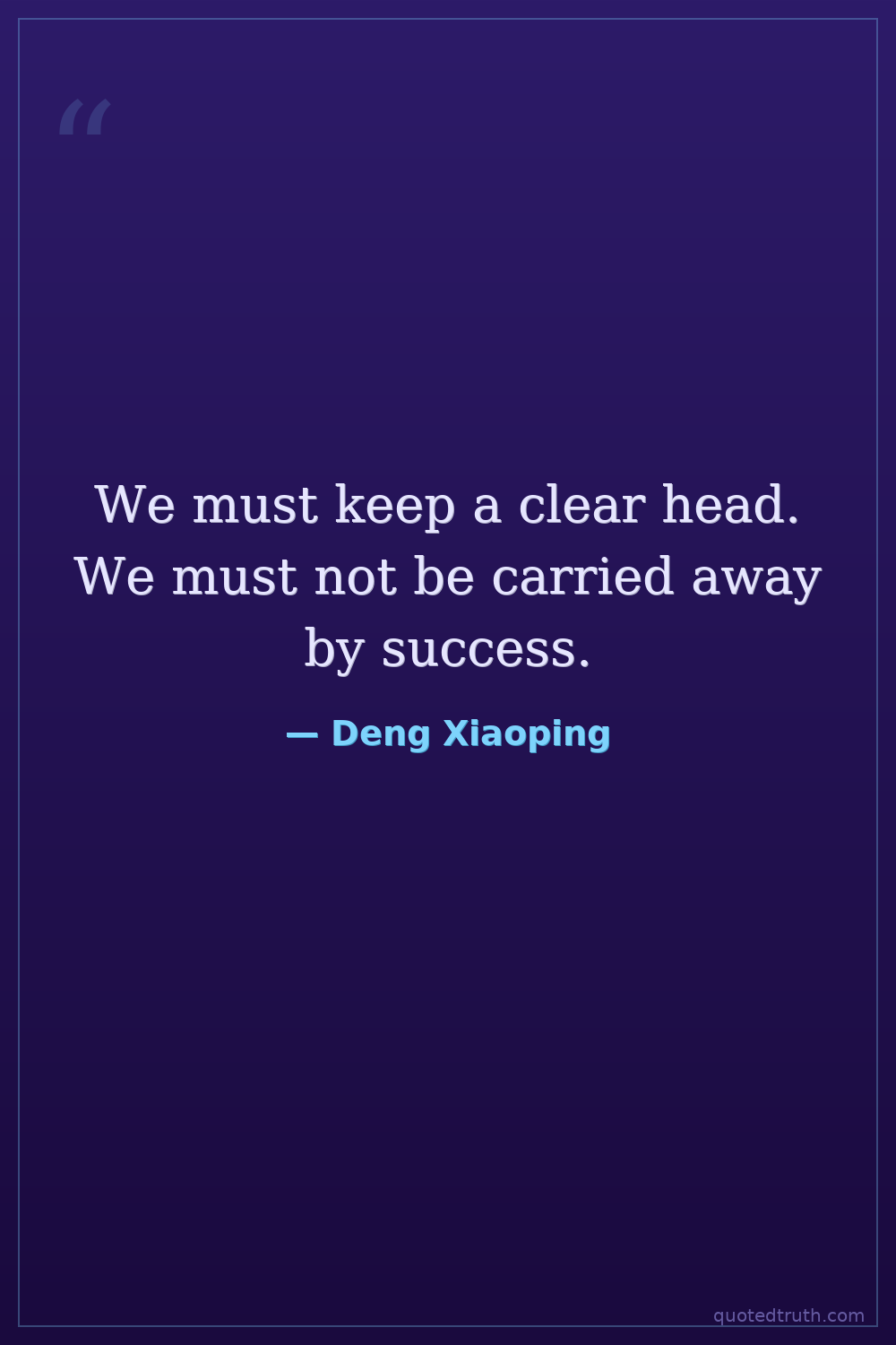 We must keep a clear head. We must not be carried away by success.