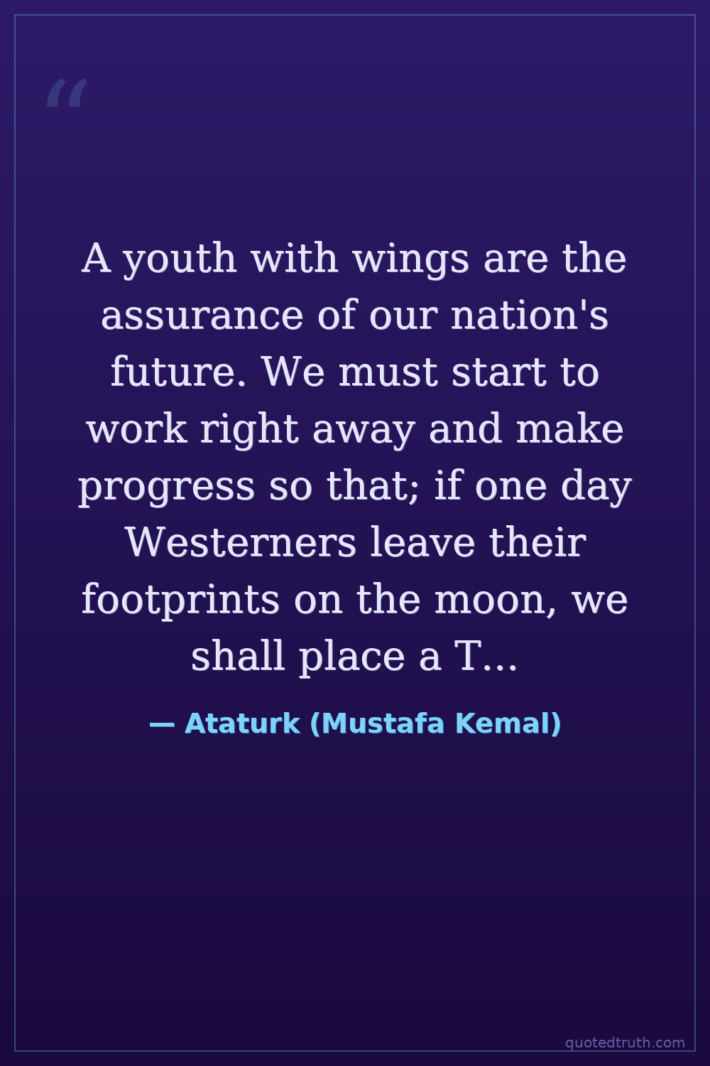 A youth with wings are the assurance of our nation's future. We must start to work right away and make progress so that; if one day Westerners leave their footprints on the moon, we shall place a Turkish one among those.