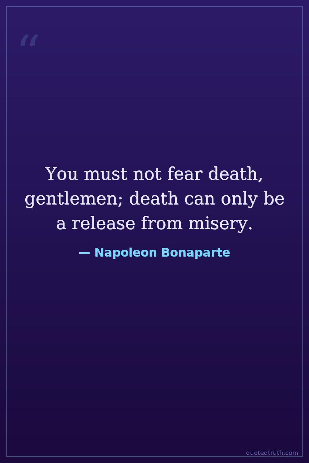 You must not fear death, gentlemen; death can only be a release from misery.