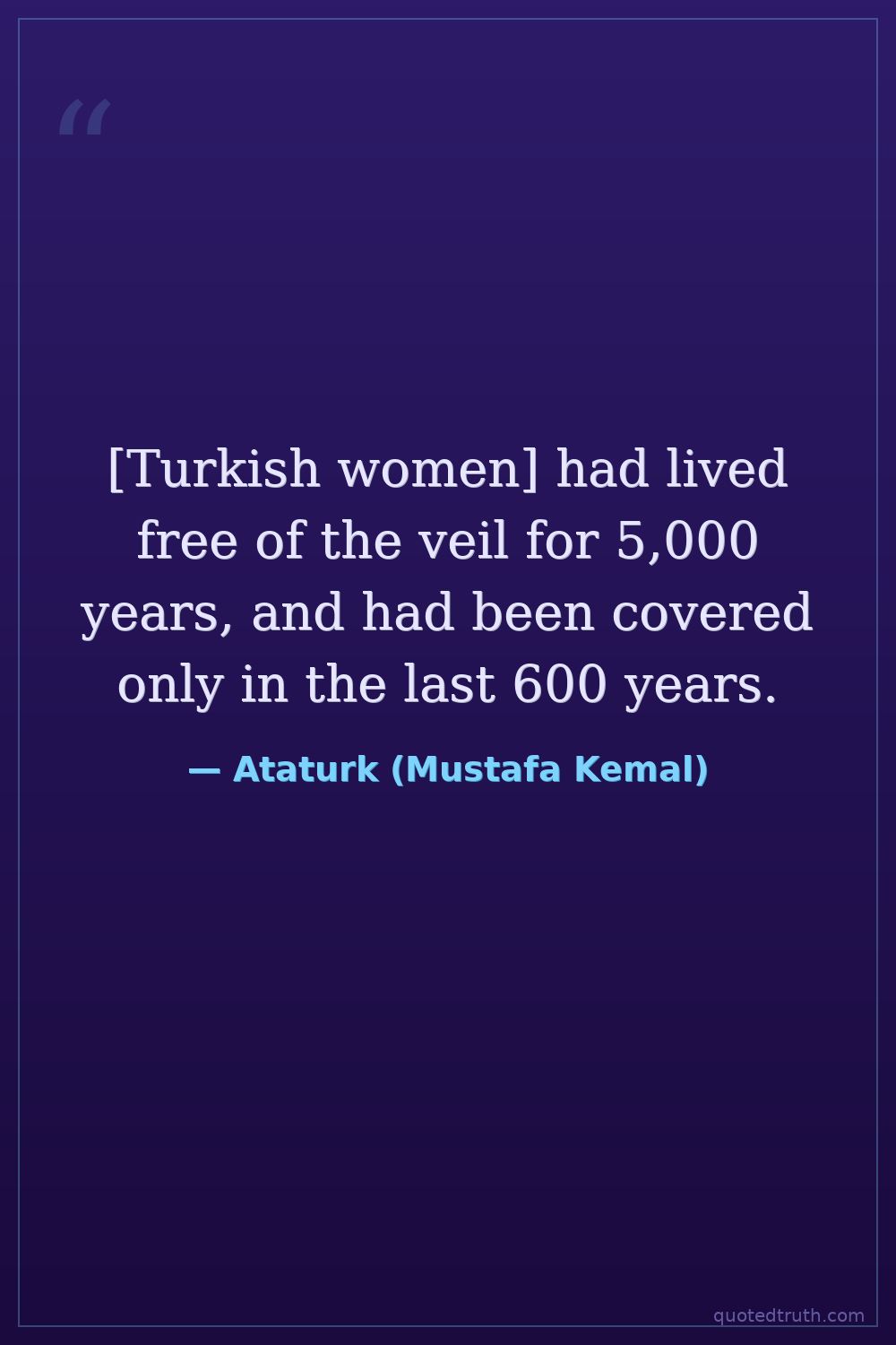 [Turkish women] had lived free of the veil for 5,000 years, and had been covered only in the last 600 years.