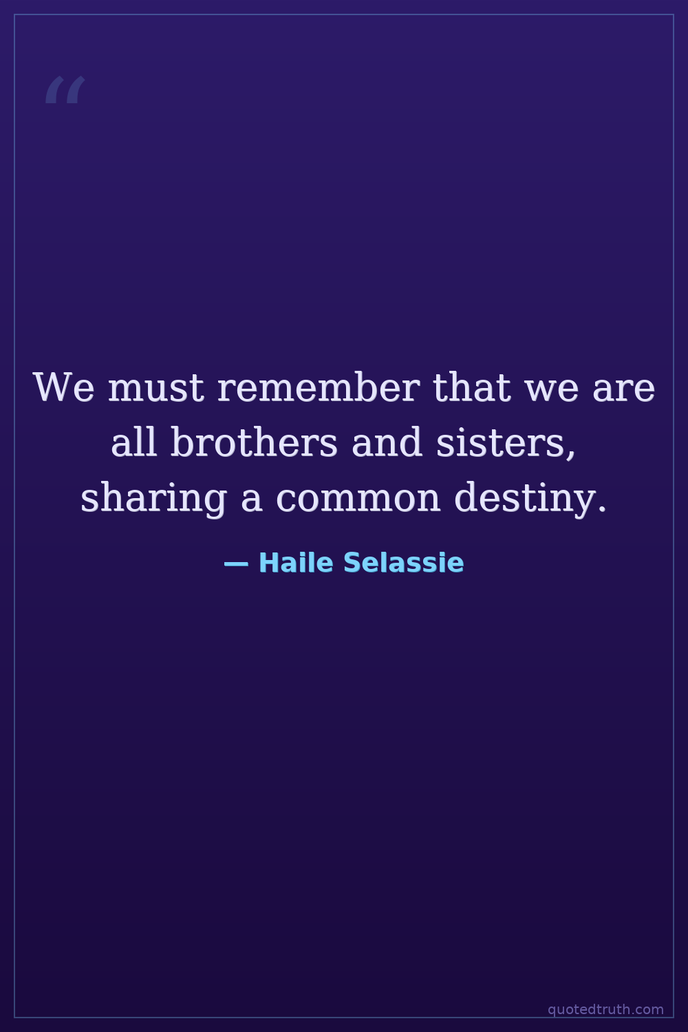 We must remember that we are all brothers and sisters, sharing a common destiny.