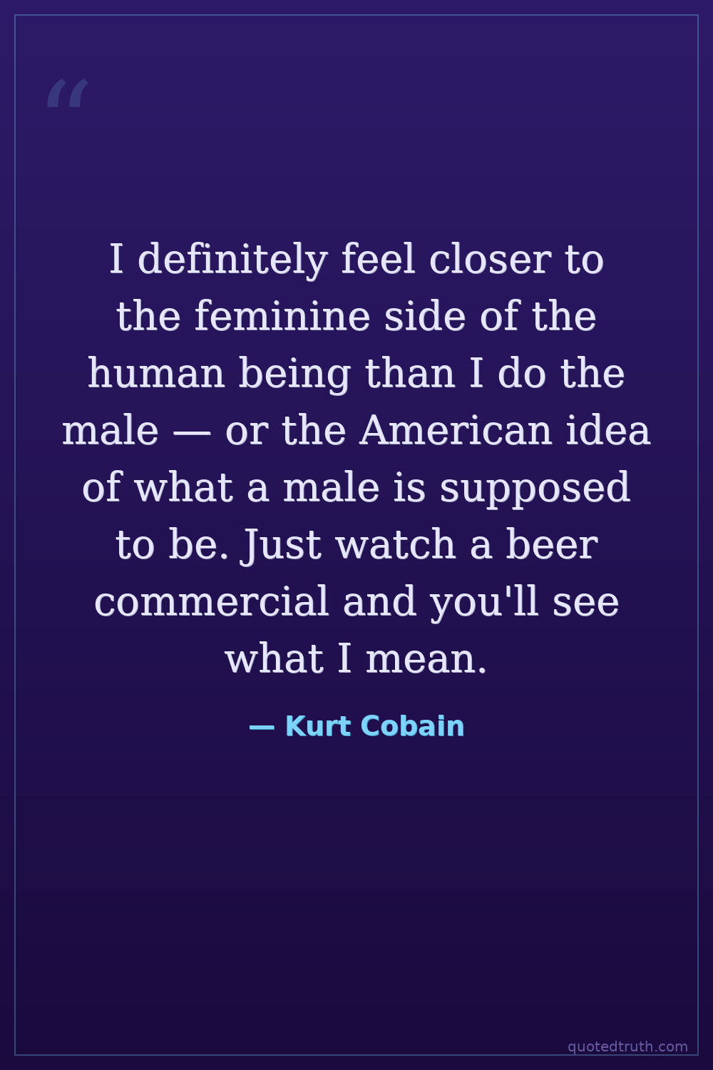 I definitely feel closer to the feminine side of the human being than I do the male — or the American idea of what a male is supposed to be. Just watch a beer commercial and you'll see what I mean.