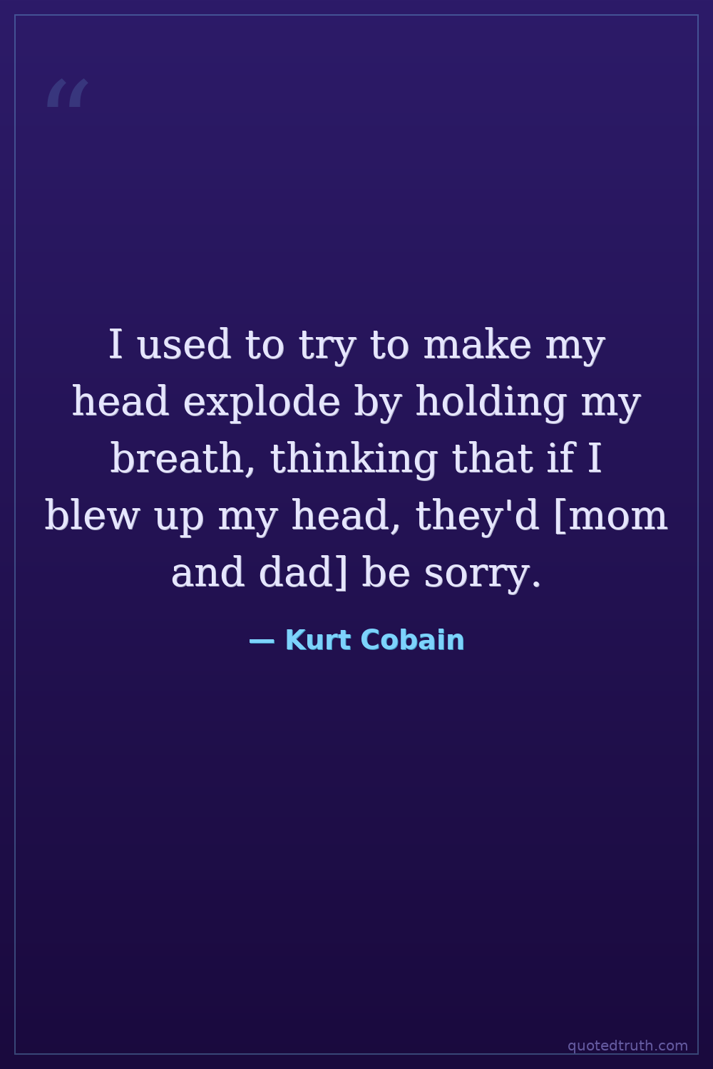 Kurt Cobain — "I used to try to make my head explode by holding my breath, thinking that if I b…"