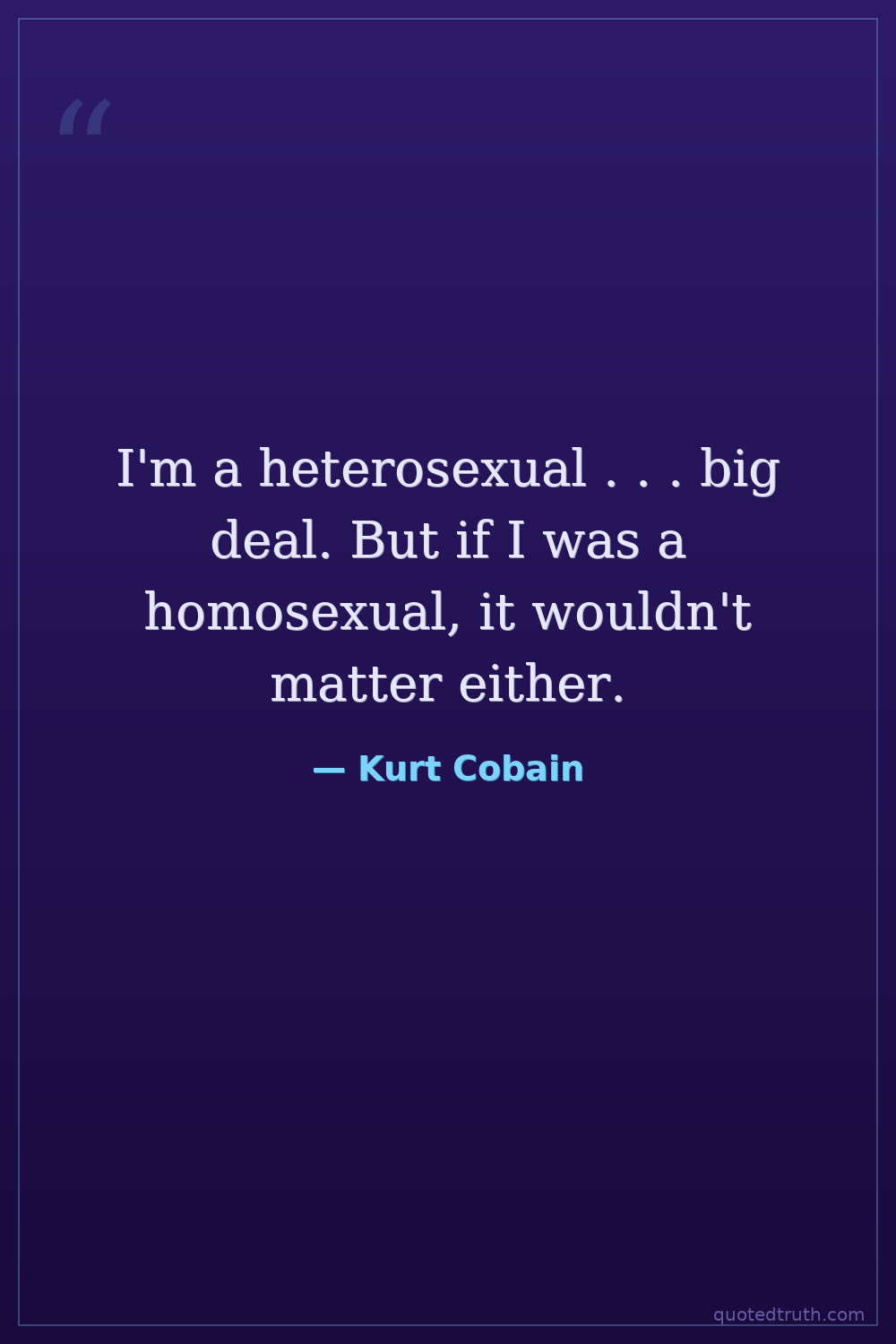 I'm a heterosexual . . . big deal. But if I was a homosexual, it wouldn't matter either.
