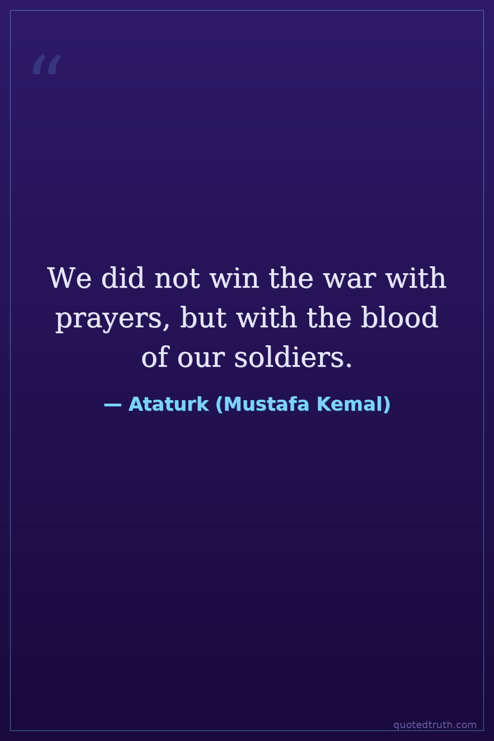 We did not win the war with prayers, but with the blood of our soldiers.