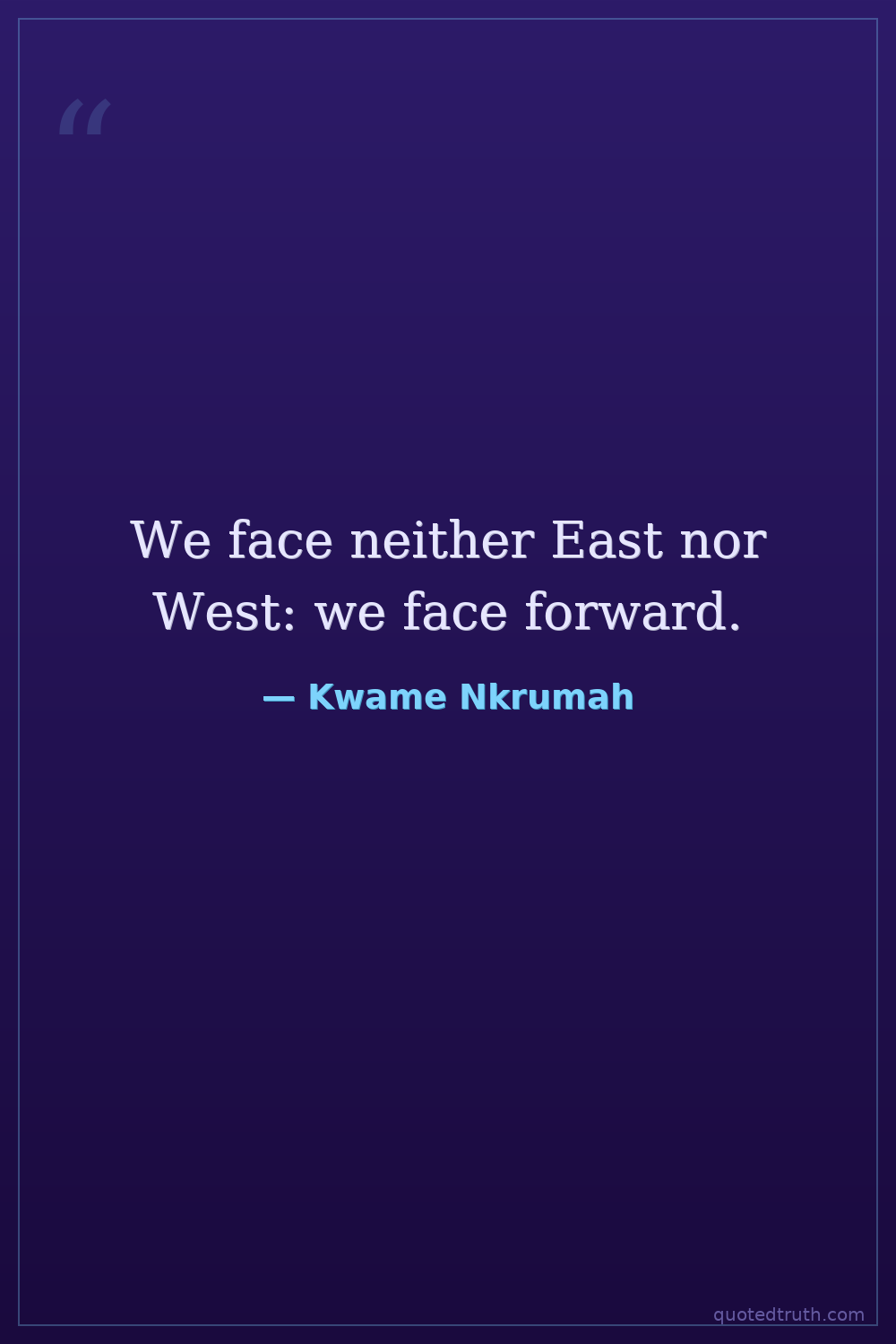 We face neither East nor West: we face forward.