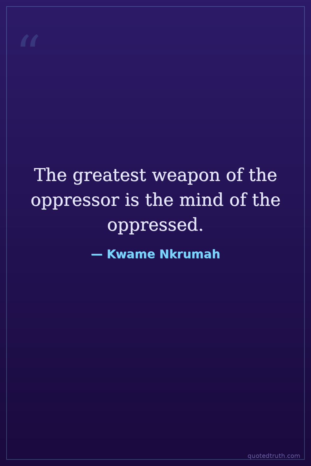 The greatest weapon of the oppressor is the mind of the oppressed.