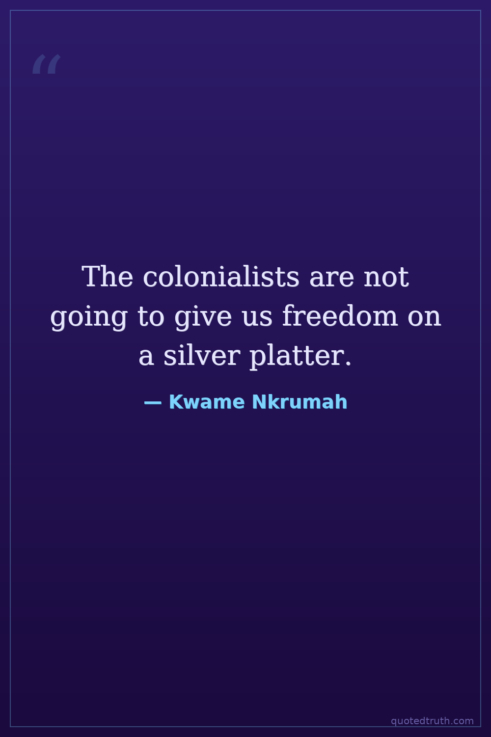 The colonialists are not going to give us freedom on a silver platter.