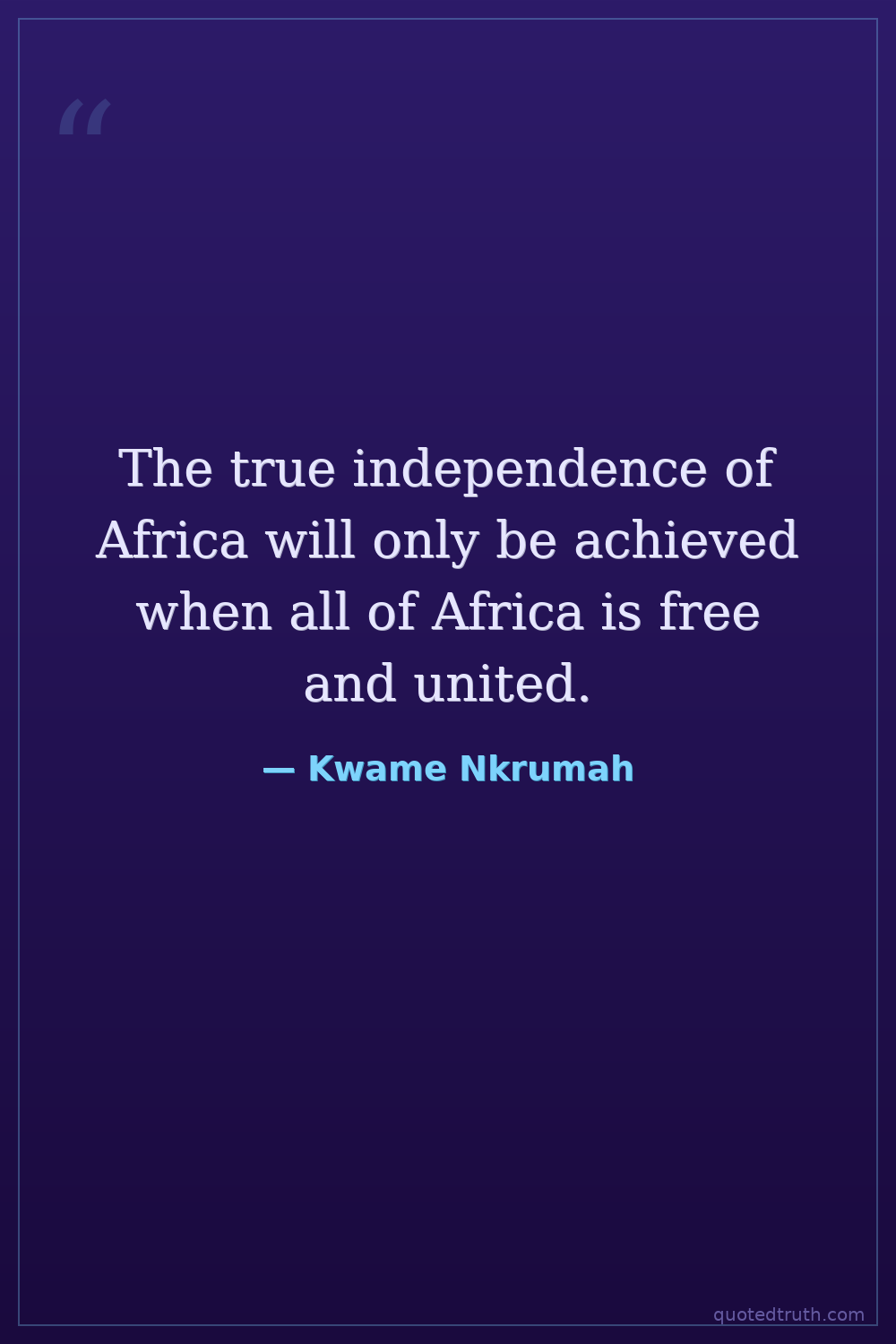 The true independence of Africa will only be achieved when all of Africa is free and united.