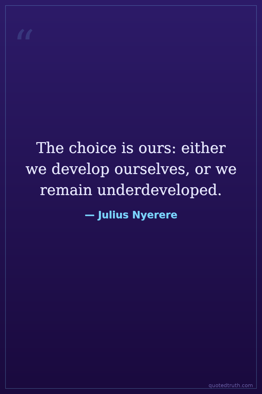 The choice is ours: either we develop ourselves, or we remain underdeveloped.
