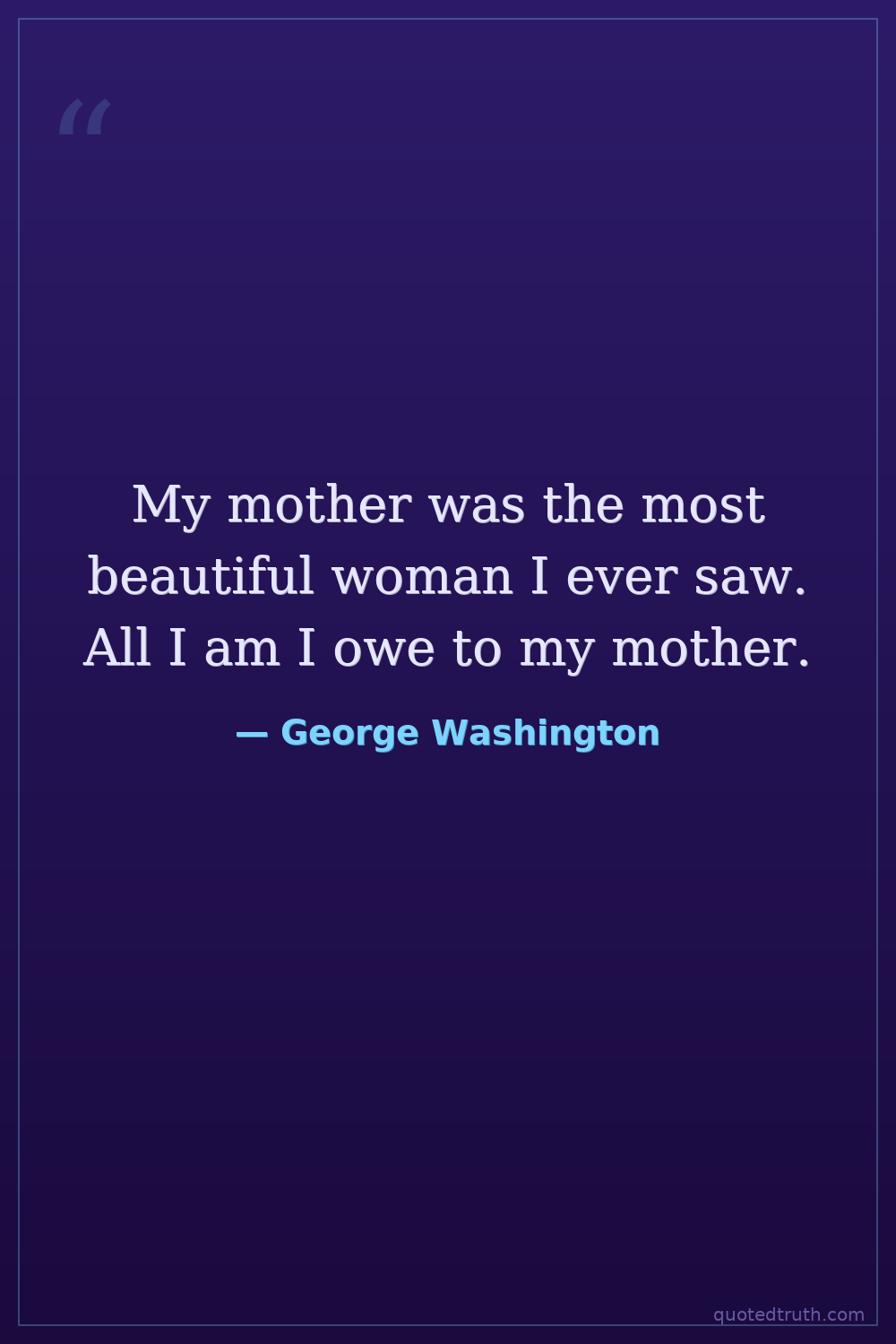My mother was the most beautiful woman I ever saw. All I am I owe to my mother.