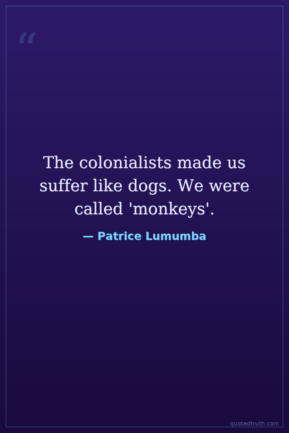 The colonialists made us suffer like dogs. We were called 'monkeys'.