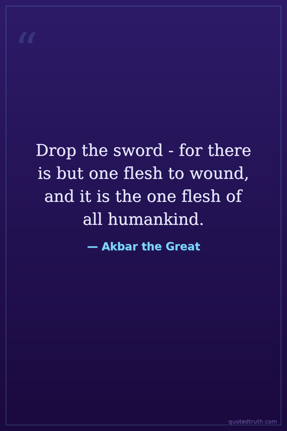 Drop the sword - for there is but one flesh to wound, and it is the one flesh of all humankind.