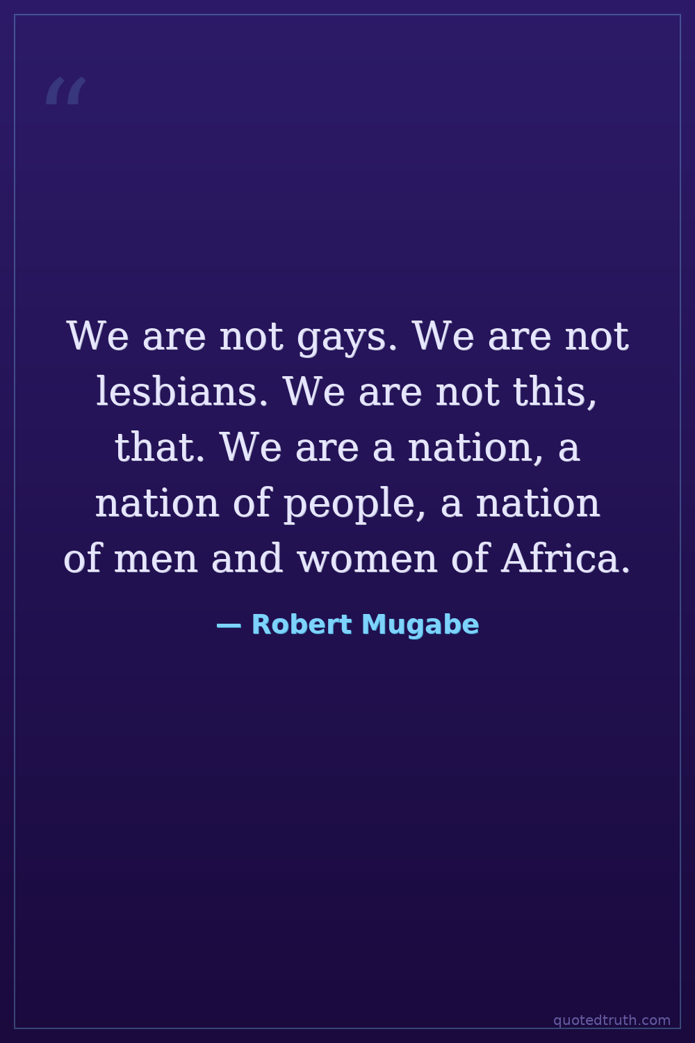 We are not gays. We are not lesbians. We are not this, that. We are a nation, a nation of people, a nation of men and women of Africa.
