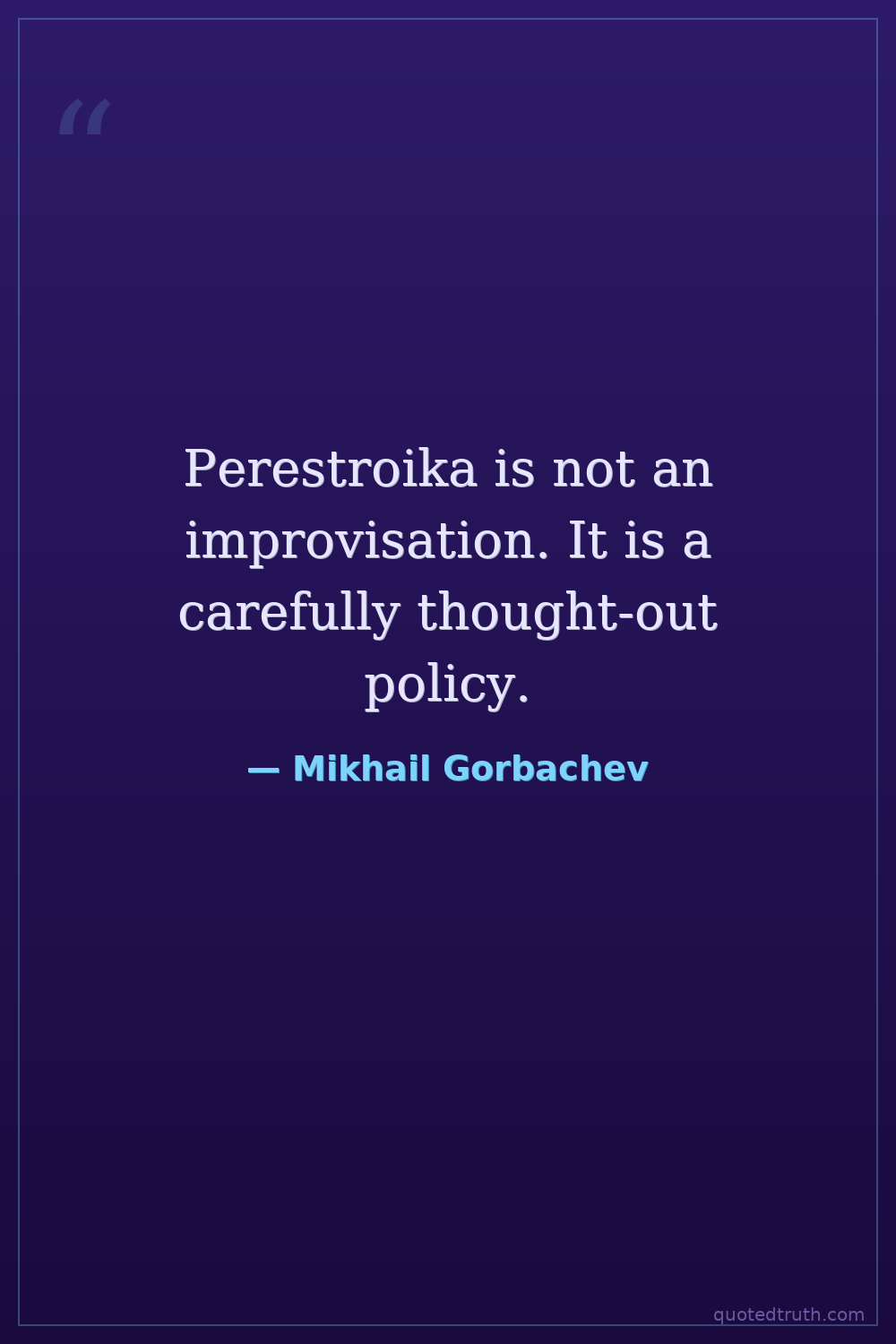 Perestroika is not an improvisation. It is a carefully thought-out policy.