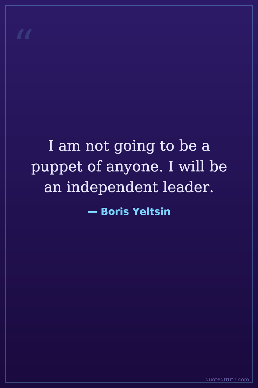 I am not going to be a puppet of anyone. I will be an independent leader.