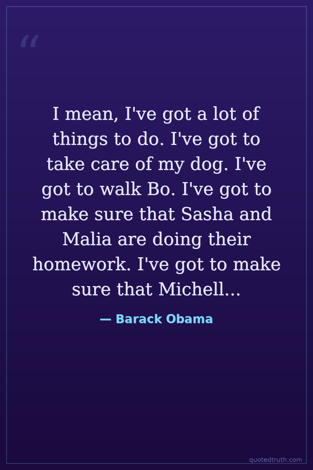 I mean, I've got a lot of things to do. I've got to take care of my dog. I've got to walk Bo. I've got to make sure that Sasha and Malia are doing their homework. I've got to make sure that Michelle is happy.