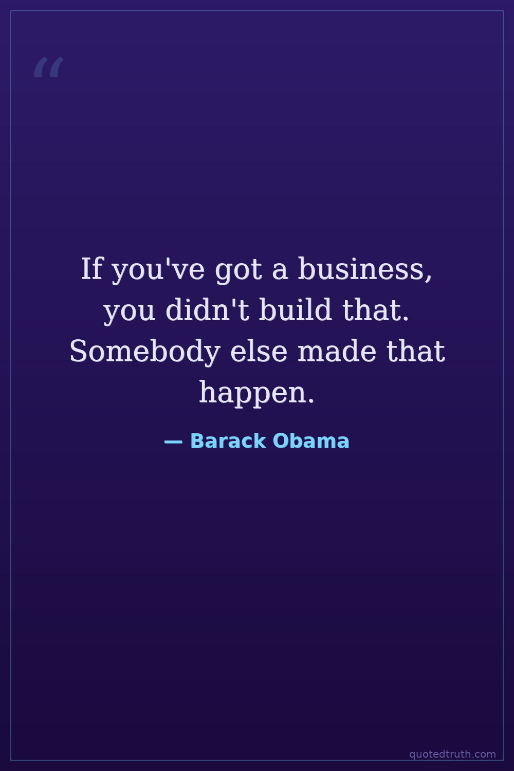 If you've got a business, you didn't build that. Somebody else made that happen.