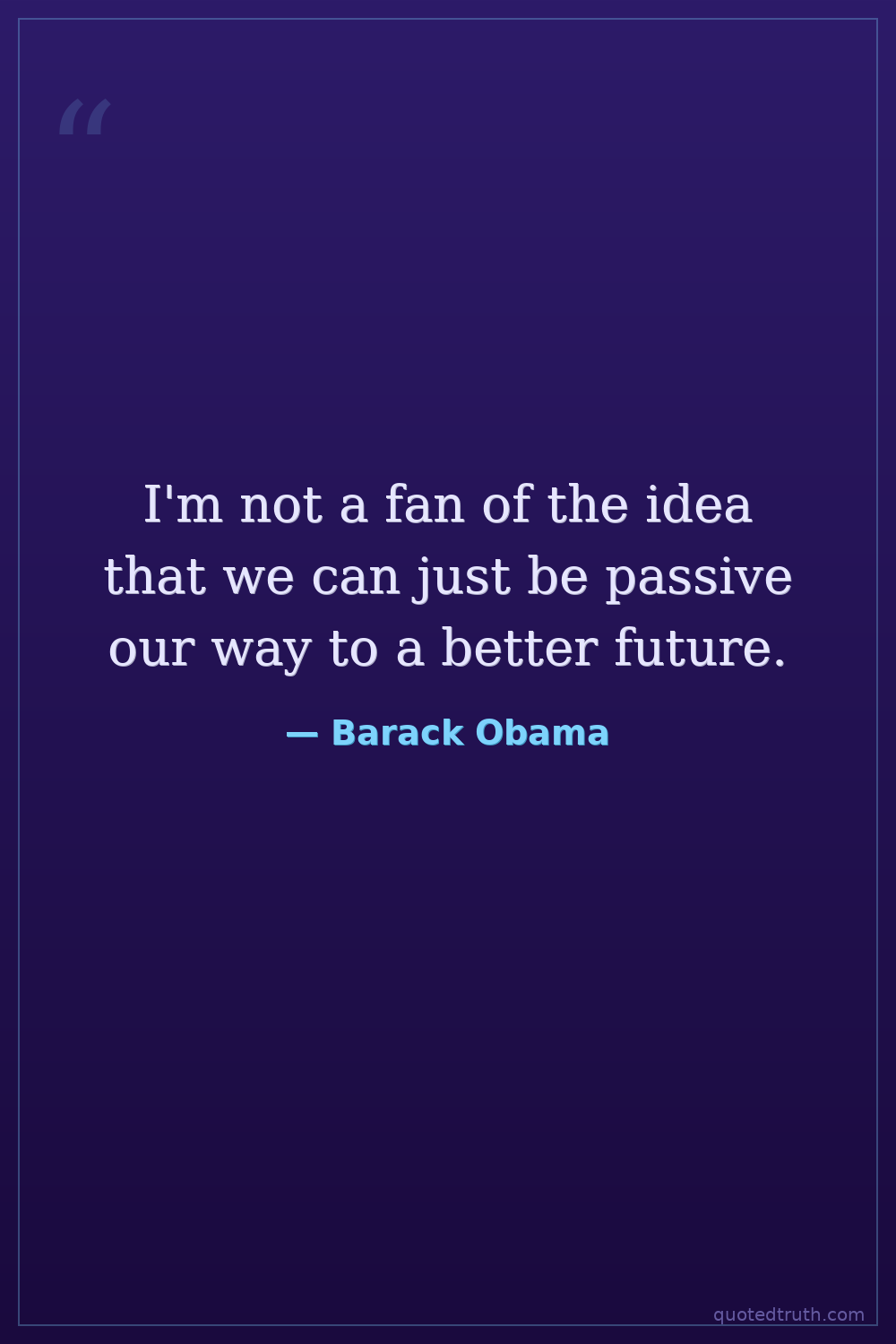 I'm not a fan of the idea that we can just be passive our way to a better future.