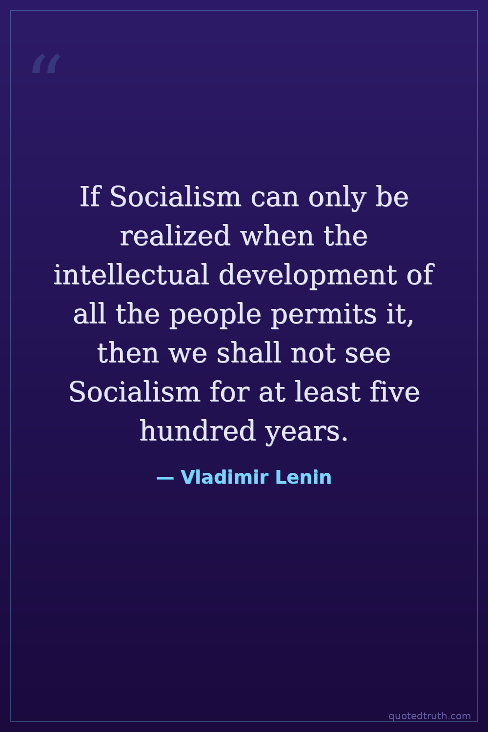 If Socialism can only be realized when the intellectual development of all the people permits it, then we shall not see Socialism for at least five hundred years.
